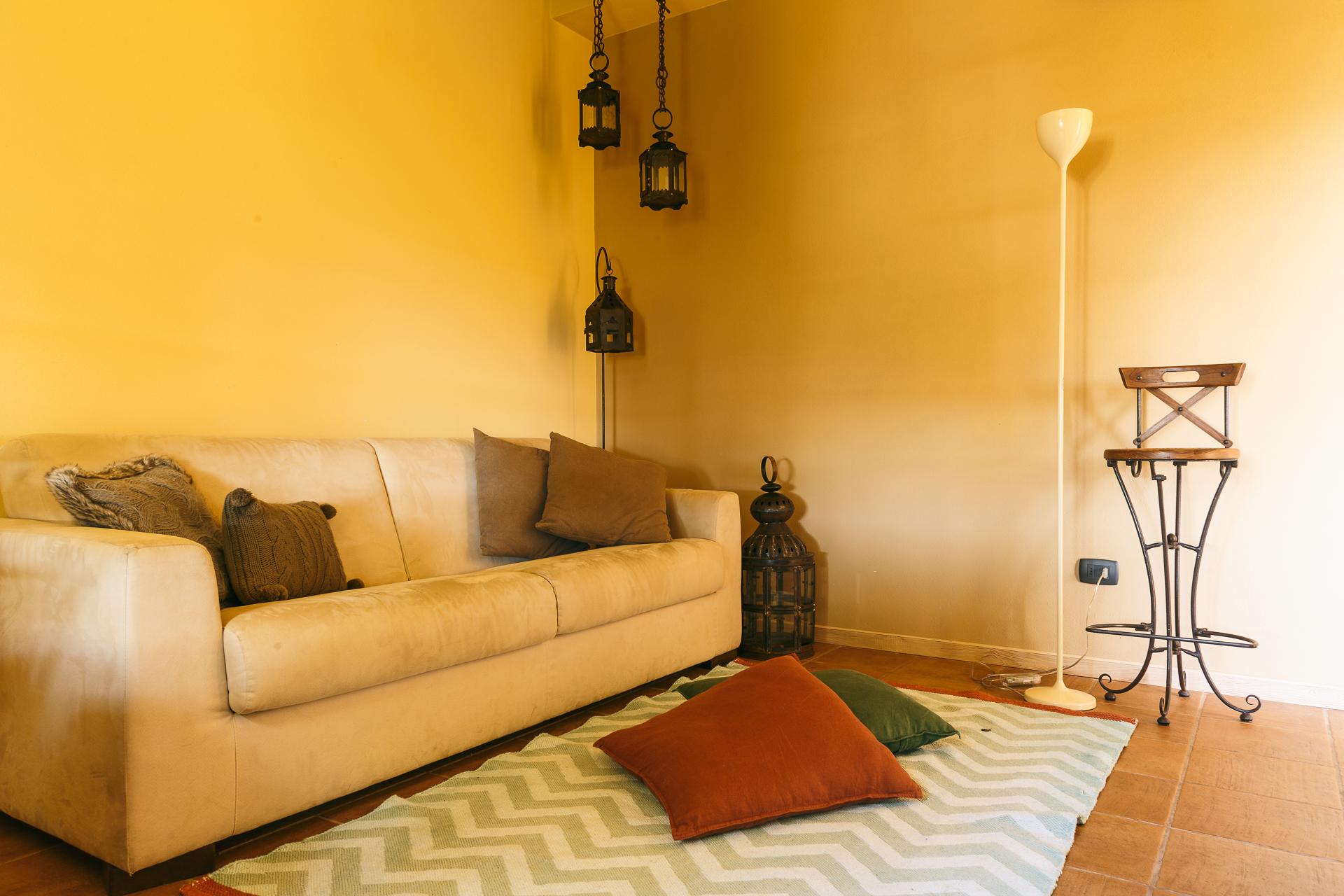 L’appartamento Basilico è situato a piano terra ed è composto da una camera matrimoniale, un bagno con doccia con sauna e un soggiorno con cucina dove è presente un divano letto matrimoniale.